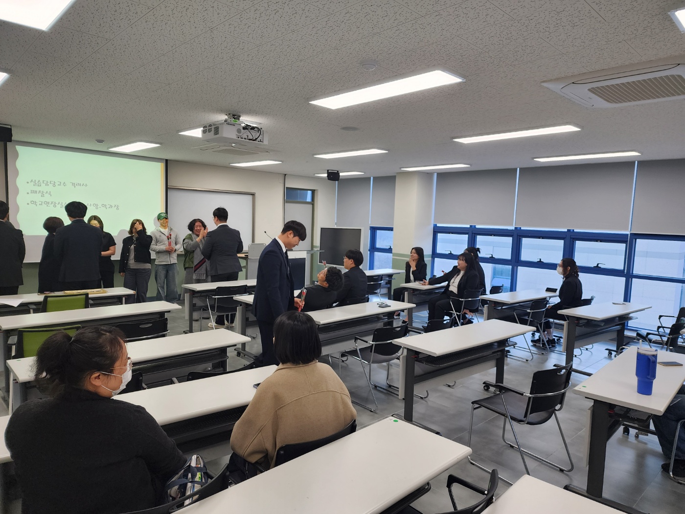 학교 현장실습을 앞두고 4학년 학생들과 교수님들이 한 자리에 모여 사전 오리엔테이션을 진행하였습니다.
